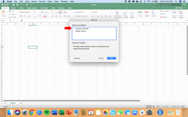 Haz clic en la casilla de verificación junto a “Herramientas para análisis”: