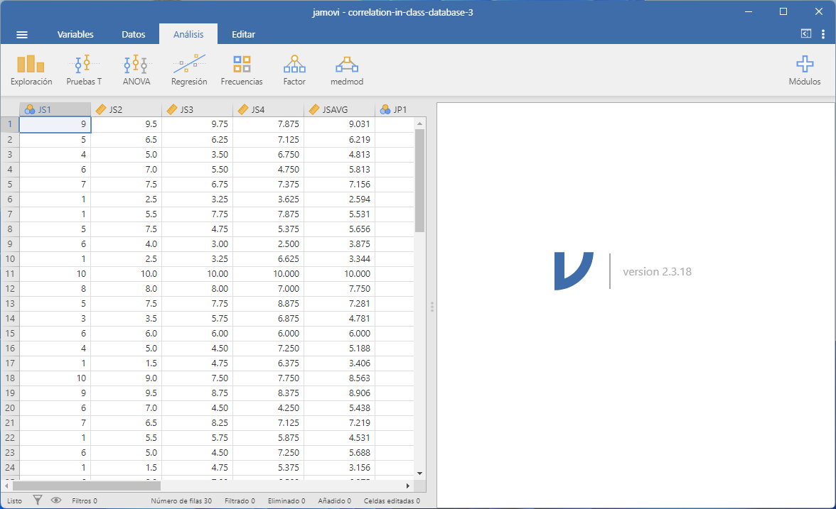 Además, este archivo está en formato .xls, pero Jamovi no puede abrir este formato. Para saber cómo cambiar este archivo .xls a un archivo .csv, que Jamovi puede abrir, haga clic aquí. Además, las imágenes de abajo son un poco pequeñas en la página. Haga clic en el enlace situado encima de cada imagen para ver una versión ampliada de la misma en una nueva ventana.