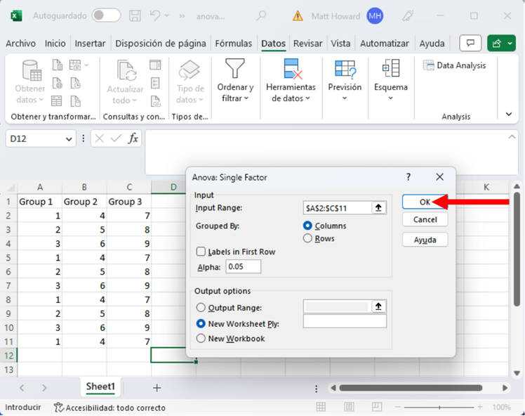 Eso es todo para realizar un ANOVA en Excel. Como siempre, si tiene alguna pregunta o comentario, por favor envíeme un correo electrónico a MHoward@SouthAlabama.edu.