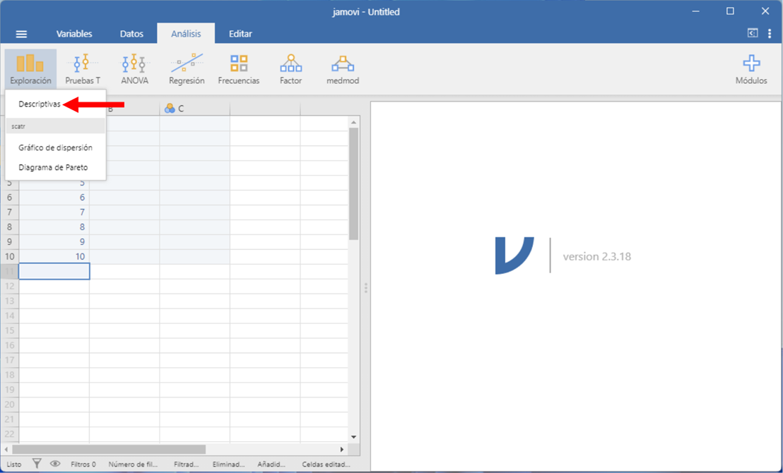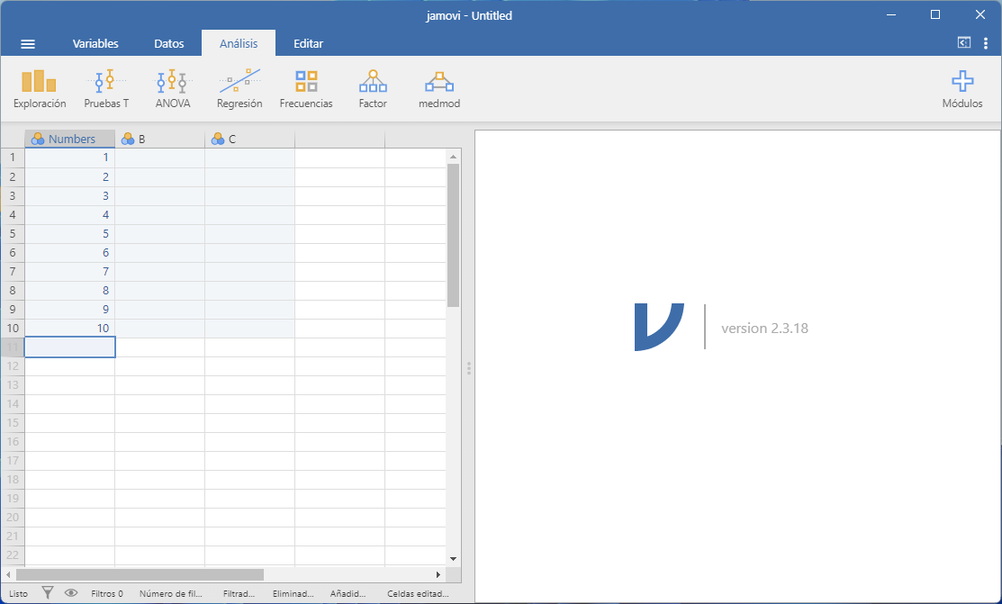 Cuando abras tus datos en Jamovi, deberían tener este aspecto: