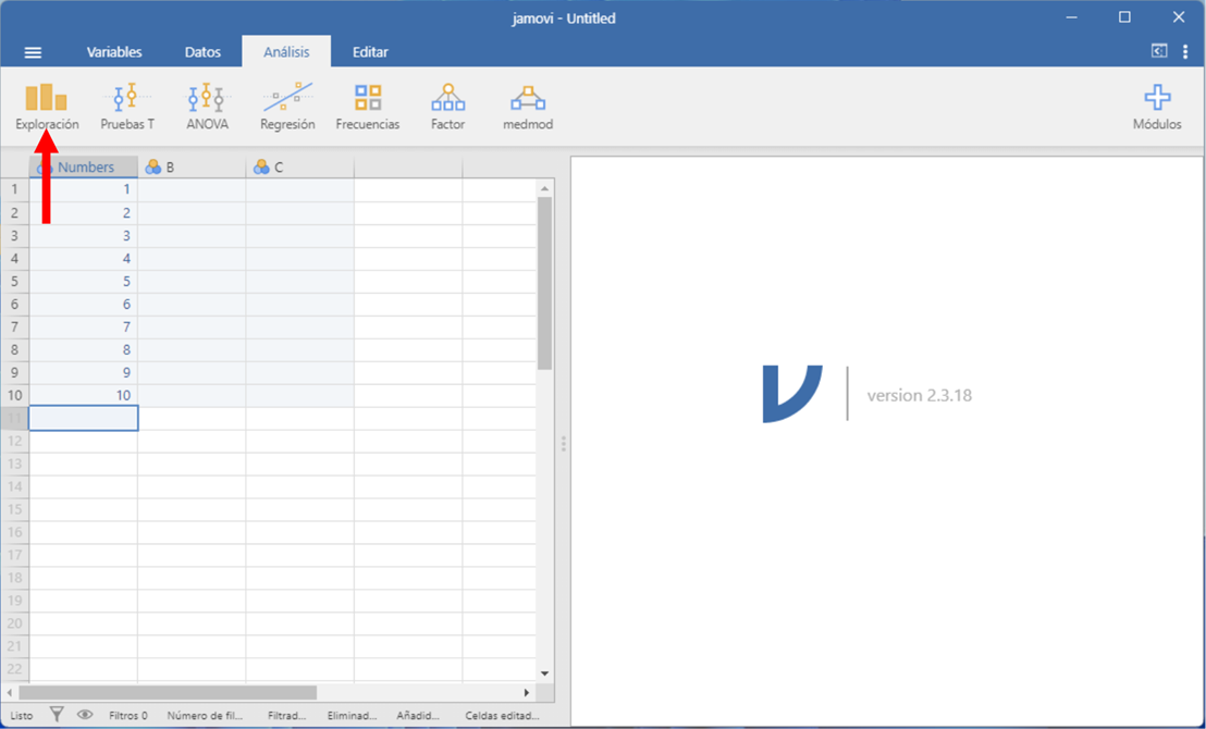 Una vez que tenga los datos abiertos, haga clic en el botón Exploración.
