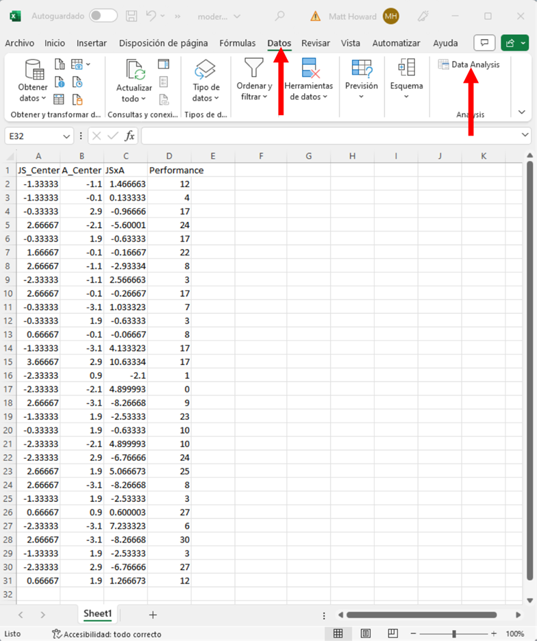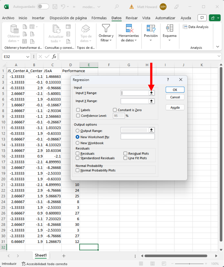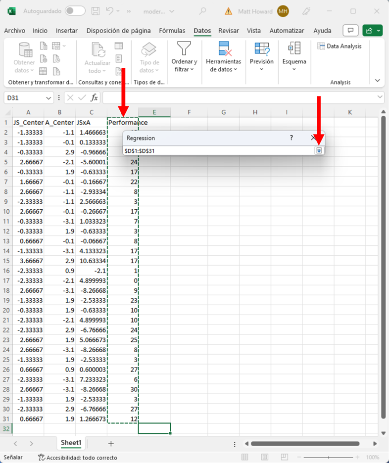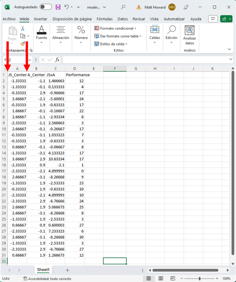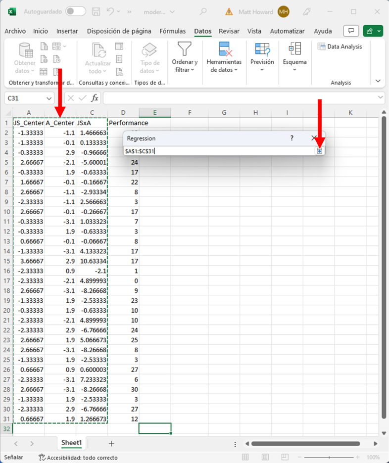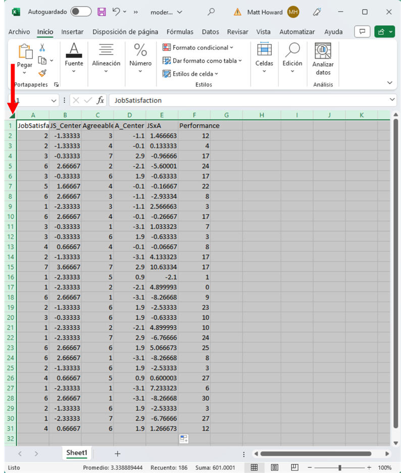 Resalta la columna JS_Centered, la columna A_Centered y la columna JSxA. Asegúrate de incluir las etiquetas y luego pulsa el botón resaltado de abajo.