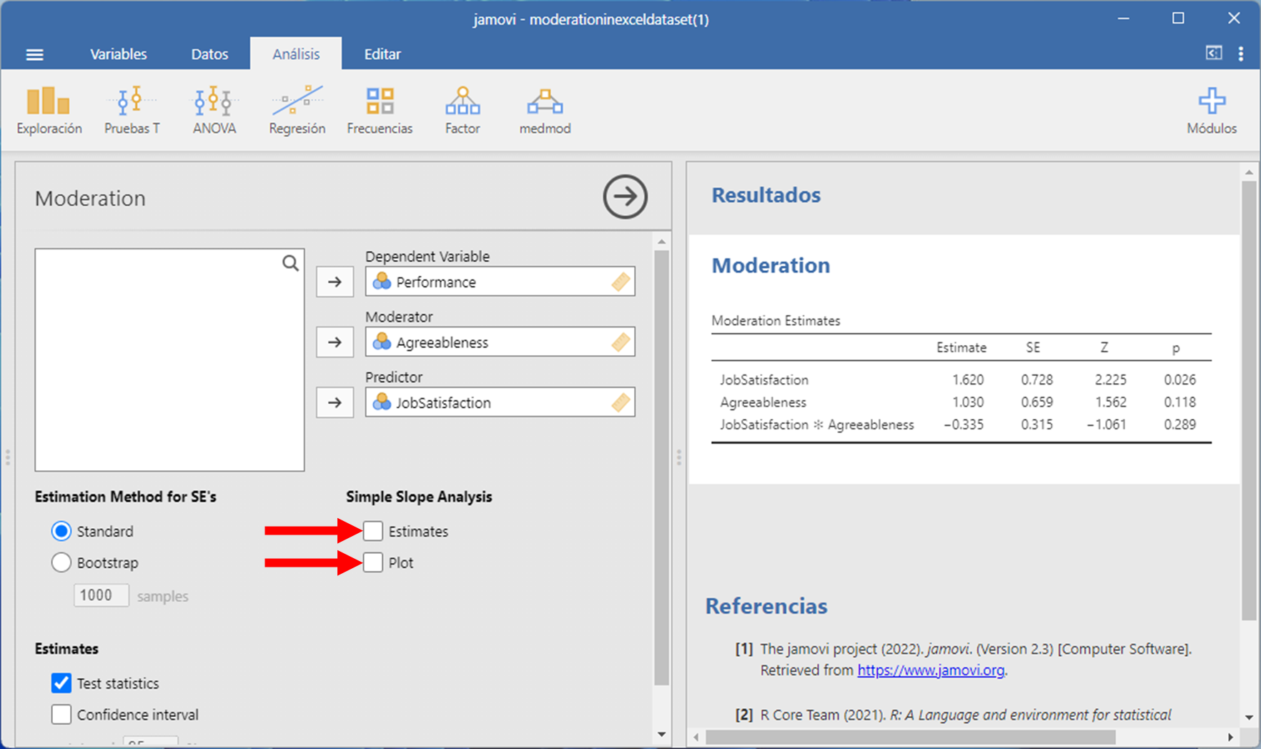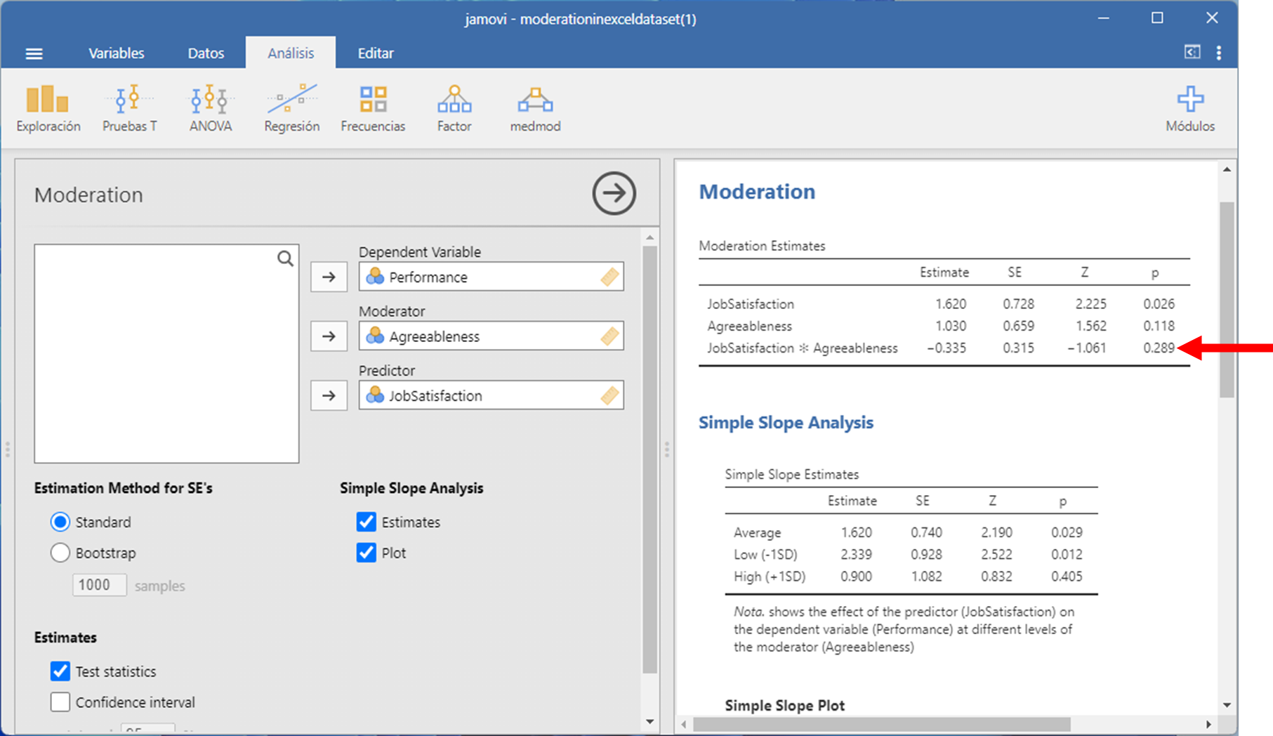 Imagen de Moderación en Jamovi 9