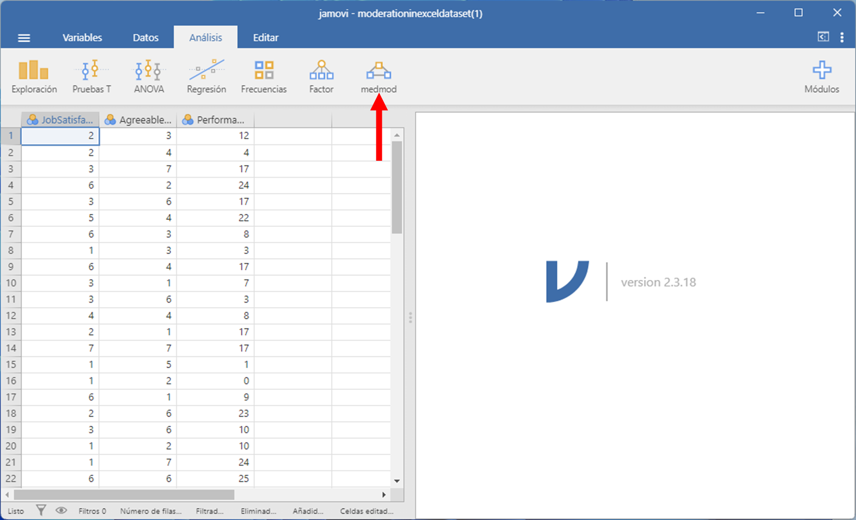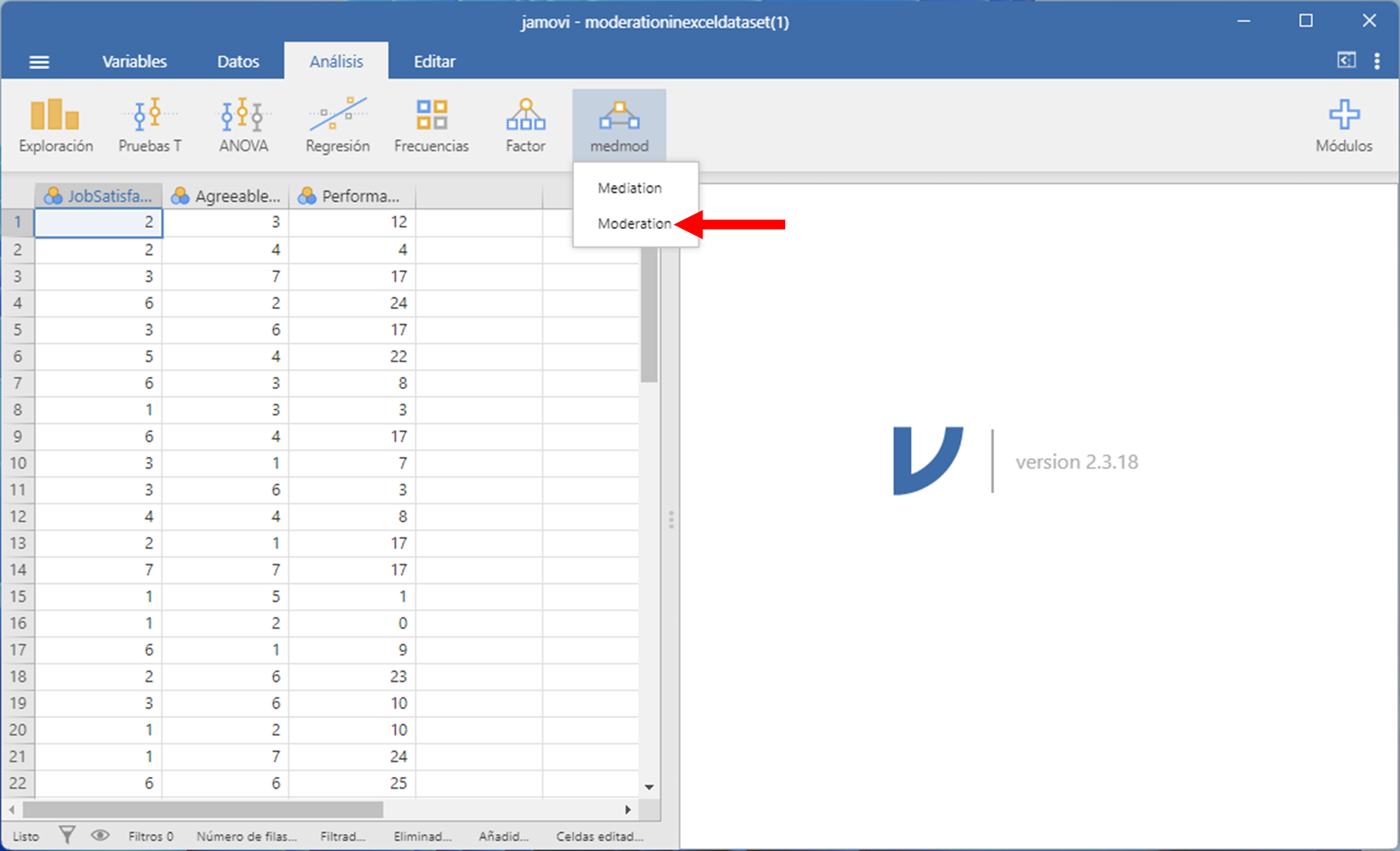 Imagen de Moderación en Jamovi 8