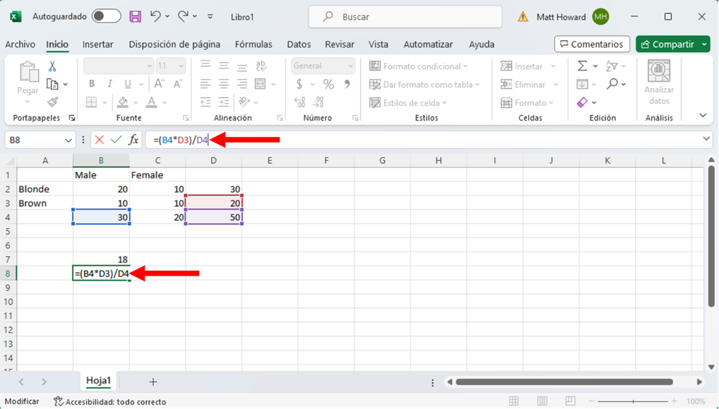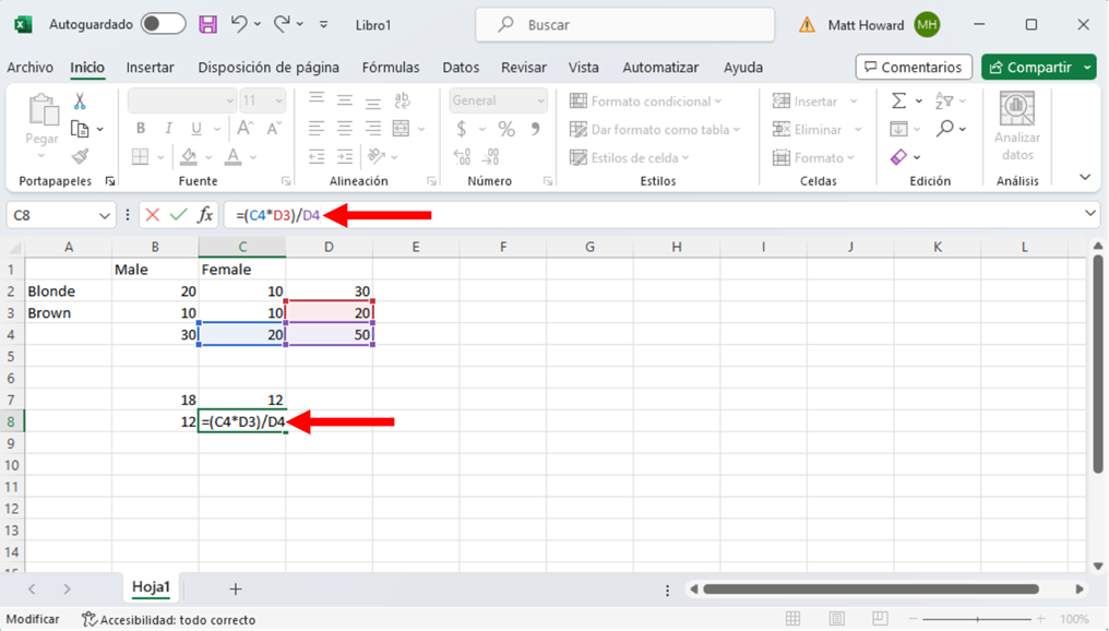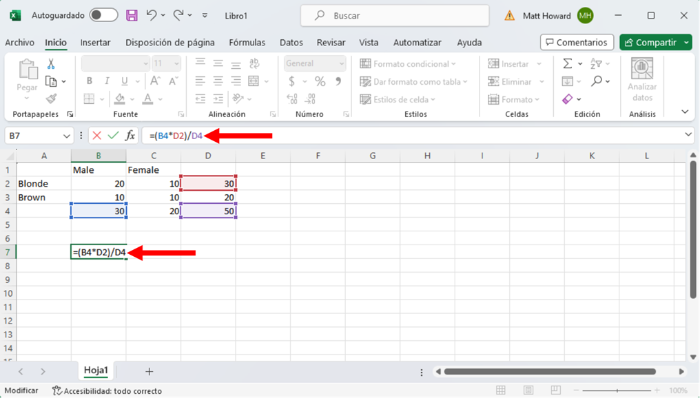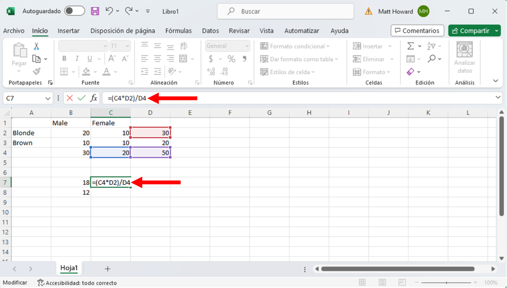 Y la imagen de abajo incluye la fórmula para la celda inferior derecha.