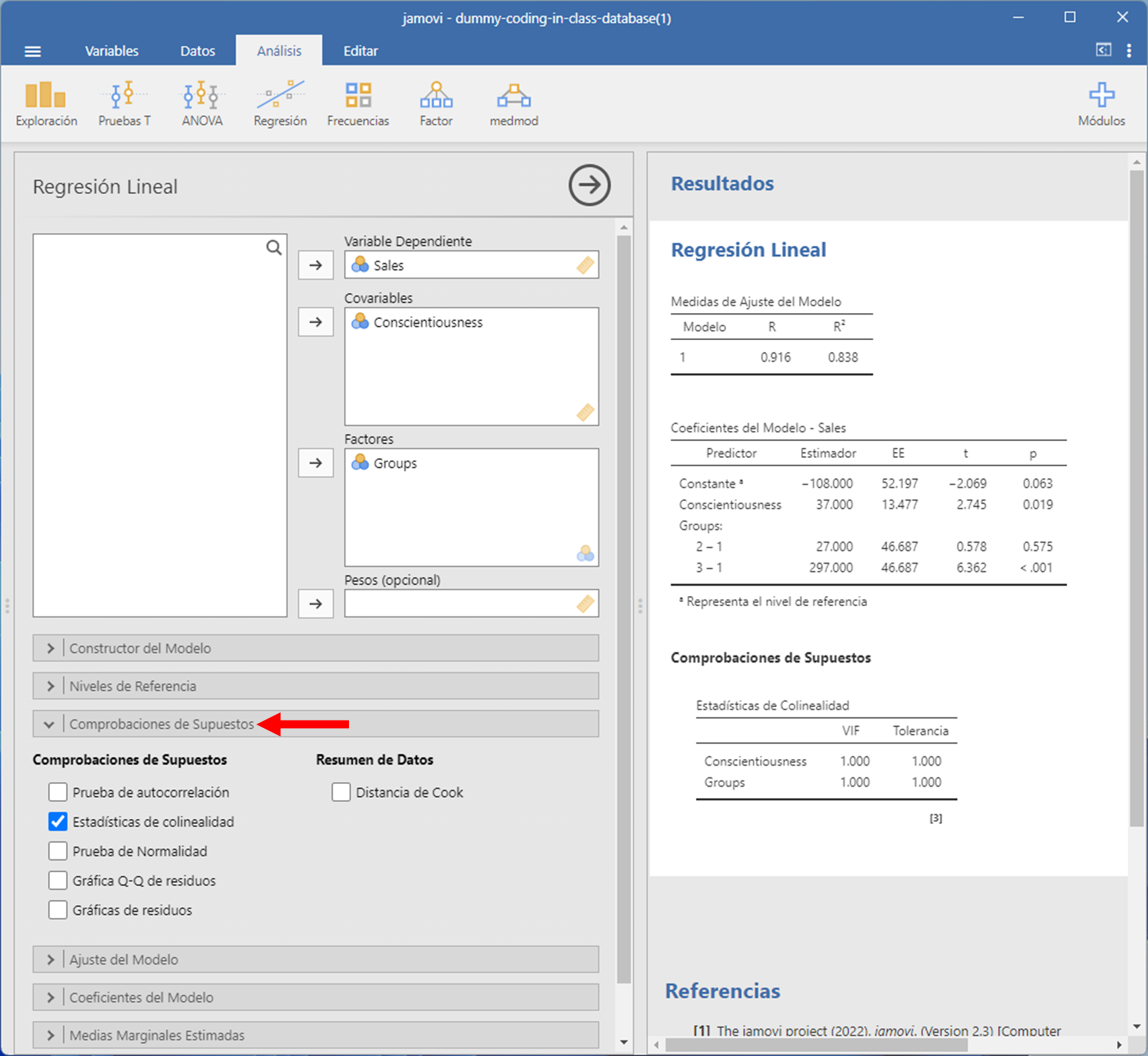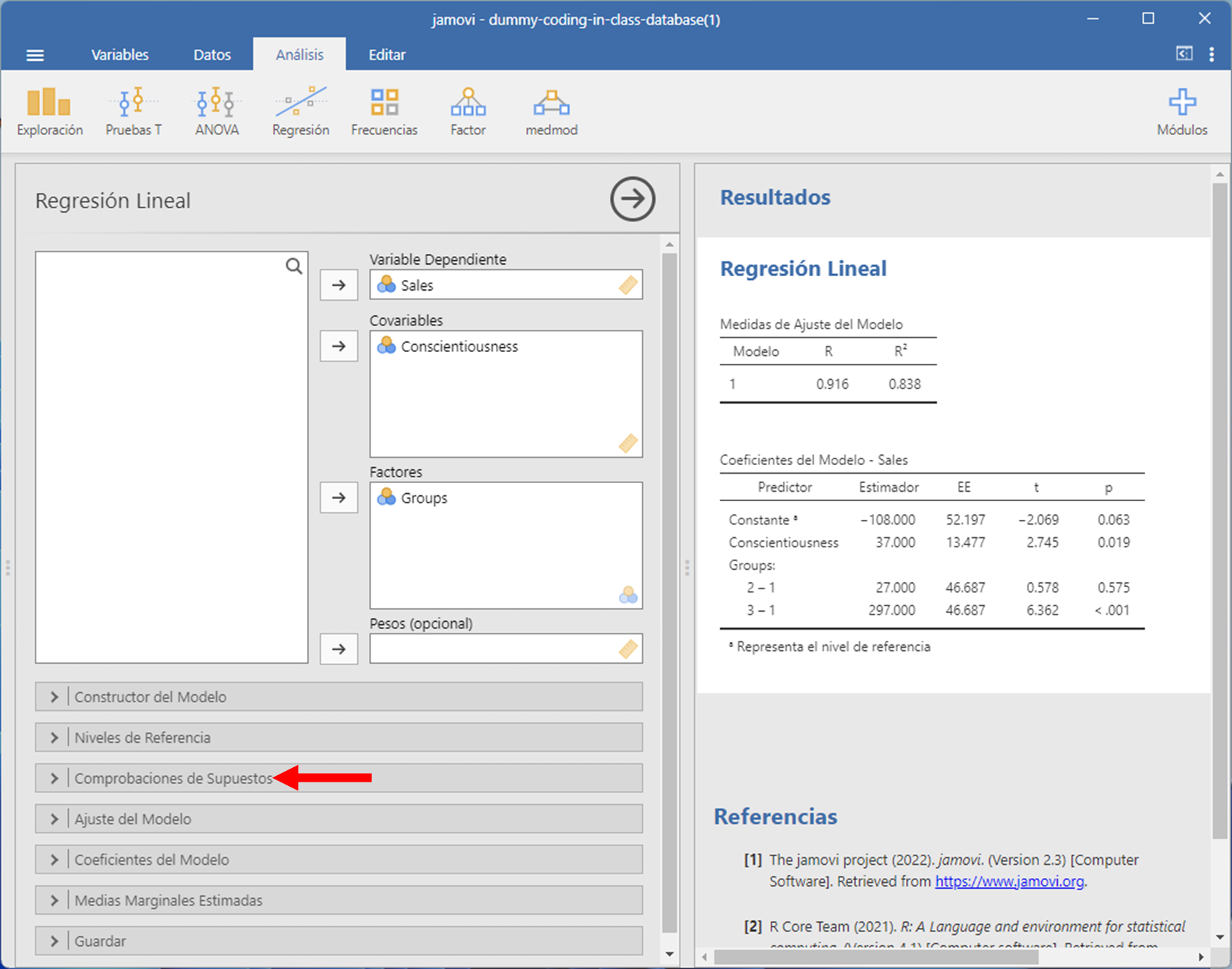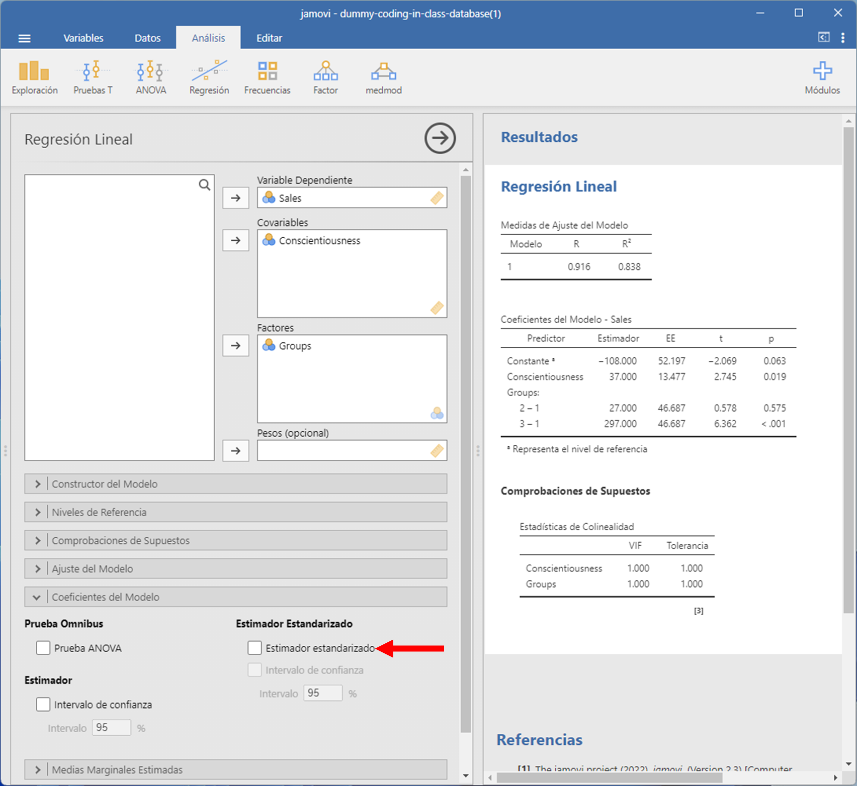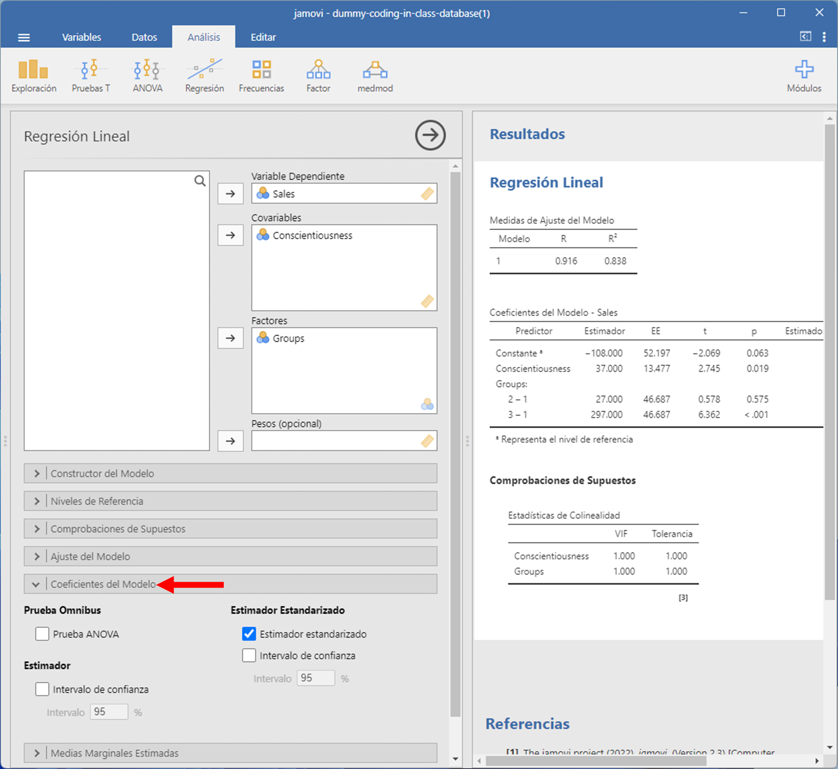 Imagen Regresión con Variables Dummy en Jamovi 13